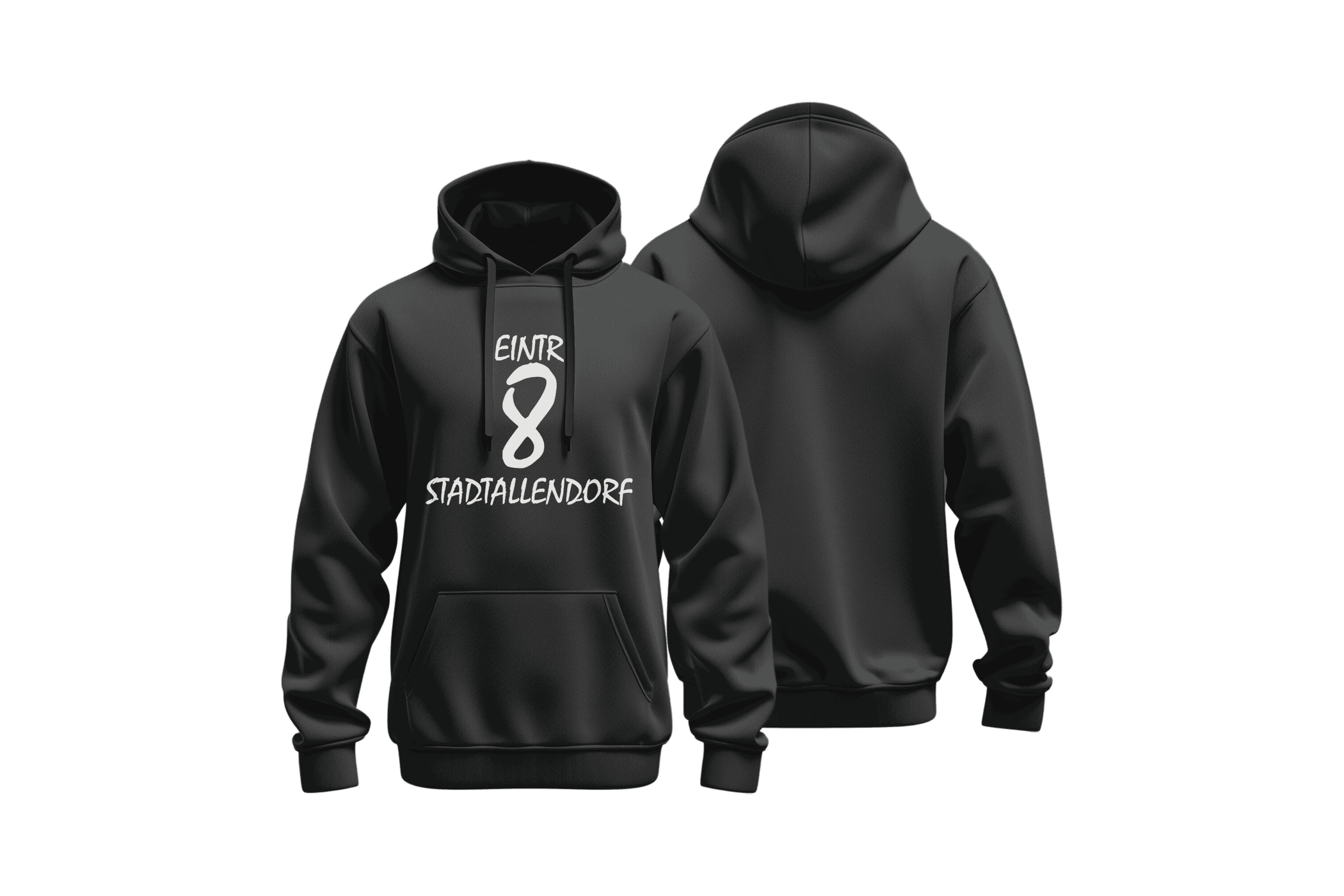 Mit diesem stylischen, schwarzen Hoodie trägst du deinen Verein direkt auf der Brust. Das markante Design mit dem ikonischen „8er“-Logo und dem Schriftzug „Eintracht Stadtallendorf“ verbindet sportlichen Look mit einem klaren Statement. Hergestellt aus weichem und wärmendem Material, bietet der Hoodie nicht nur Komfort, sondern auch die perfekte Möglichkeit, deine Unterstützung für den TSV Eintracht Stadtallendorf zu zeigen – egal ob im Stadion, in der Freizeit oder beim Training.