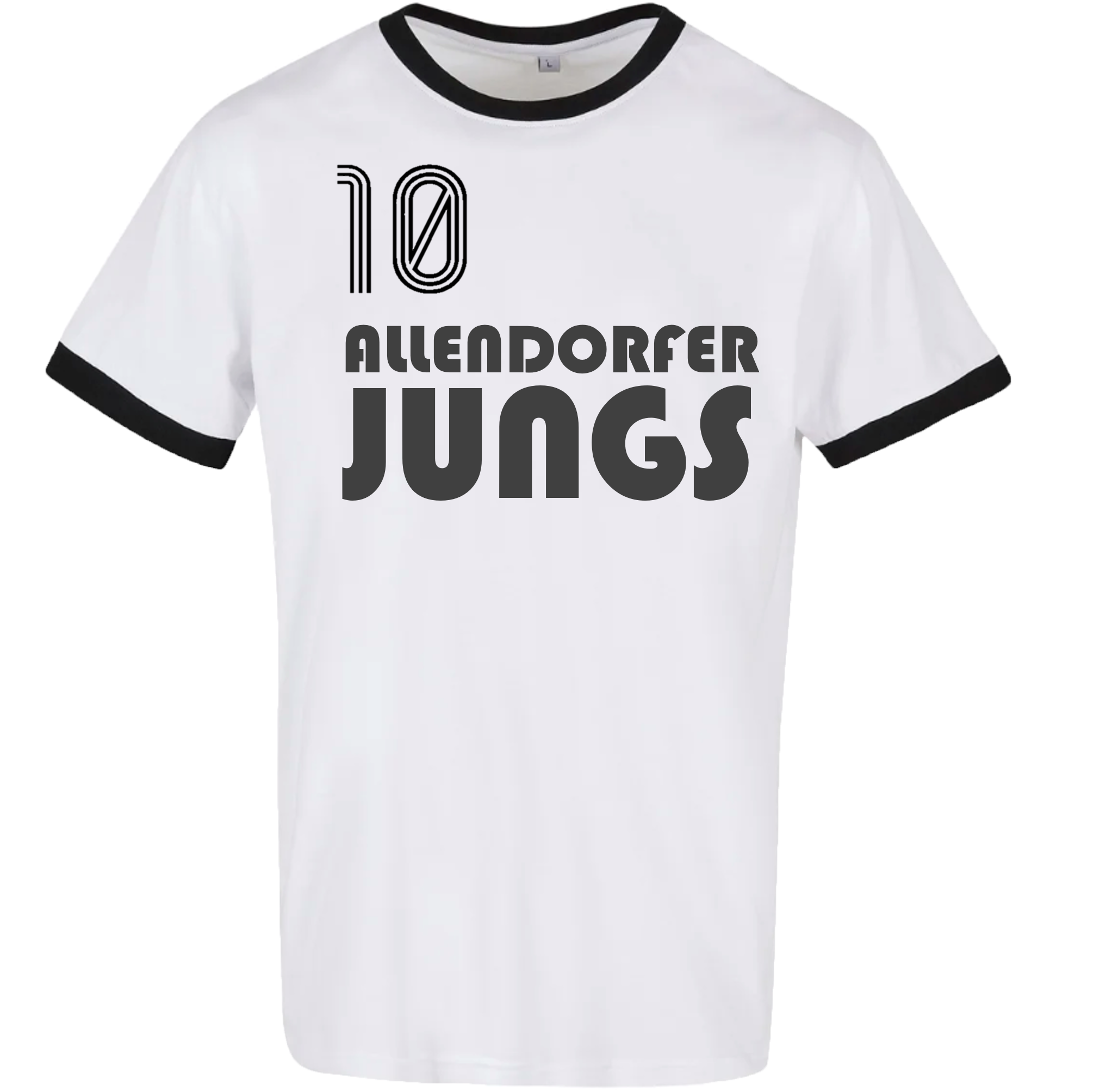 - Retro-inspirierter Schriftzug „Allendorfer Jungs“ auf der Vorderseite
